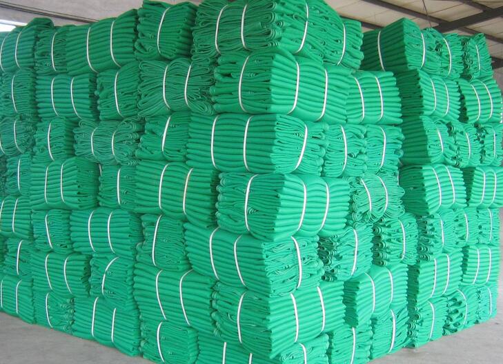 安全網由網體、邊繩、系繩和筋繩構成。網體由網繩編結而成,具有菱形或方形的網目。編結物相鄰兩個繩結之間的距離稱為網目尺寸;網體四周邊緣上的網繩,稱為邊繩。安全網的尺寸(公稱尺寸)即由邊繩的尺寸而定;把安全網固定在支撐物上的繩,稱為系繩。此外,凡用于增加安全網強度的繩,則統稱為筋繩。安全網的材料,要求其比重小、強度高、耐磨性好、延伸率大和耐久性較強。此外還應有一定的耐氣候性能,受潮受濕后其強度下降不太大。安全網以化學纖維為主要材料。同一張安全網上所有的網繩,都要采用同一材料,所有材料的濕干強力比不得低于75%。通常,多采用維綸和尼龍等合成化纖作網繩。丙綸出于性能不穩定、禁止使用。此外,只要符合國際有關規定的要求,亦可采用棉、麻、棕等植物材料作原料。不論用何種材料,每張安全平網的重量一般不宜超過15kg,并要能承受800N的沖擊力。